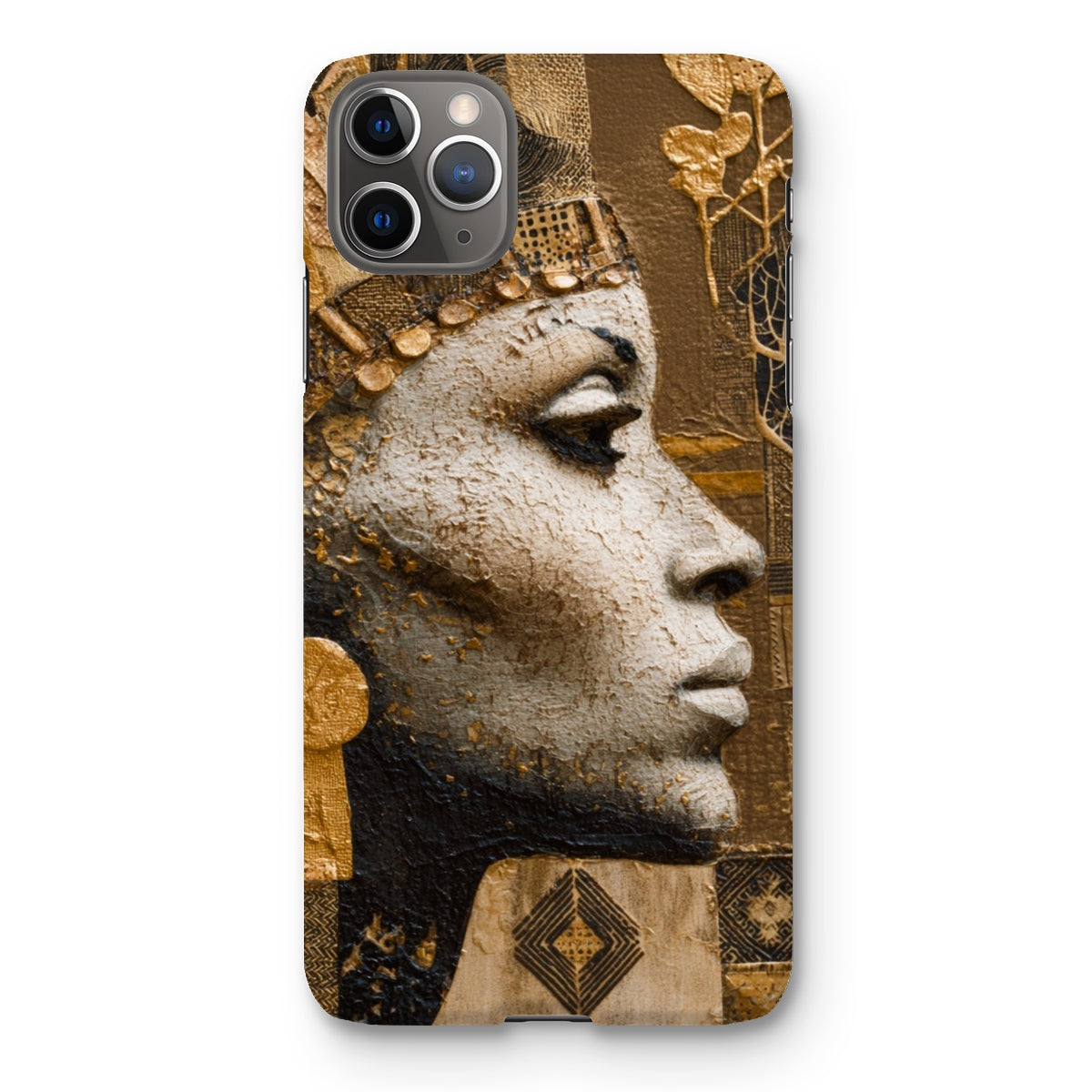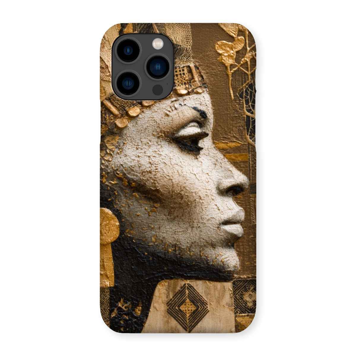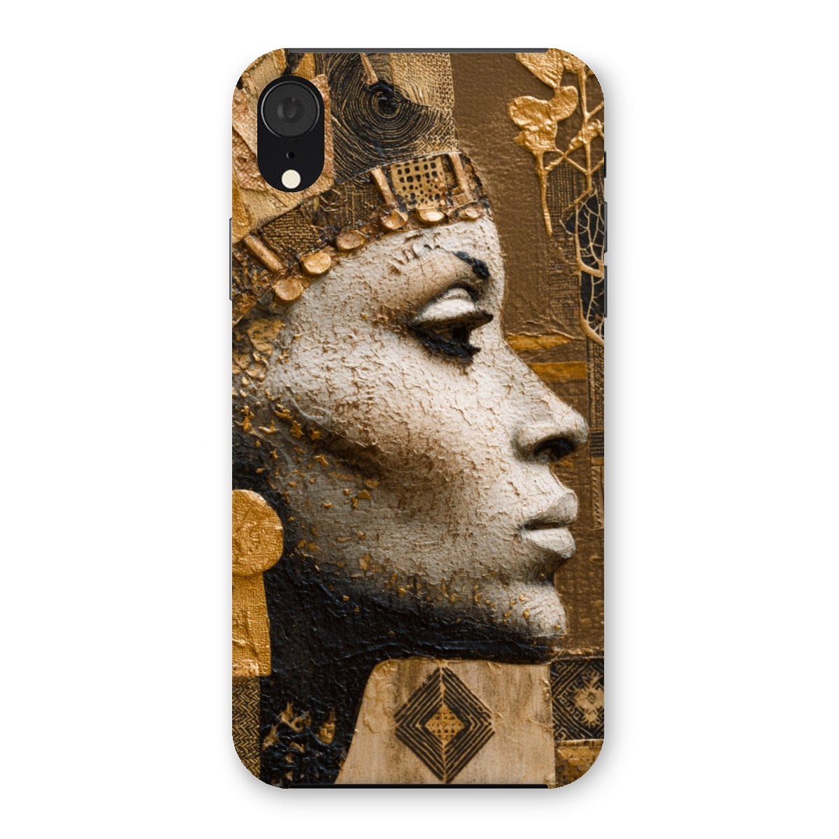 Distinctive Afrocentric design featuring a regal Golden Empress motif with a luminous gold-tone finish that catches the light from every angle, turning your phone into a statement piece.