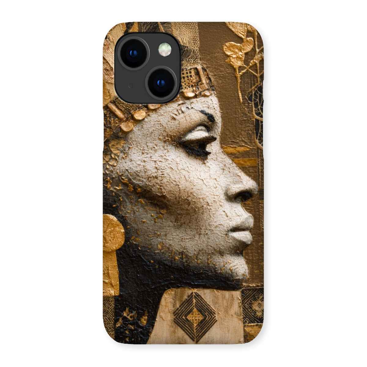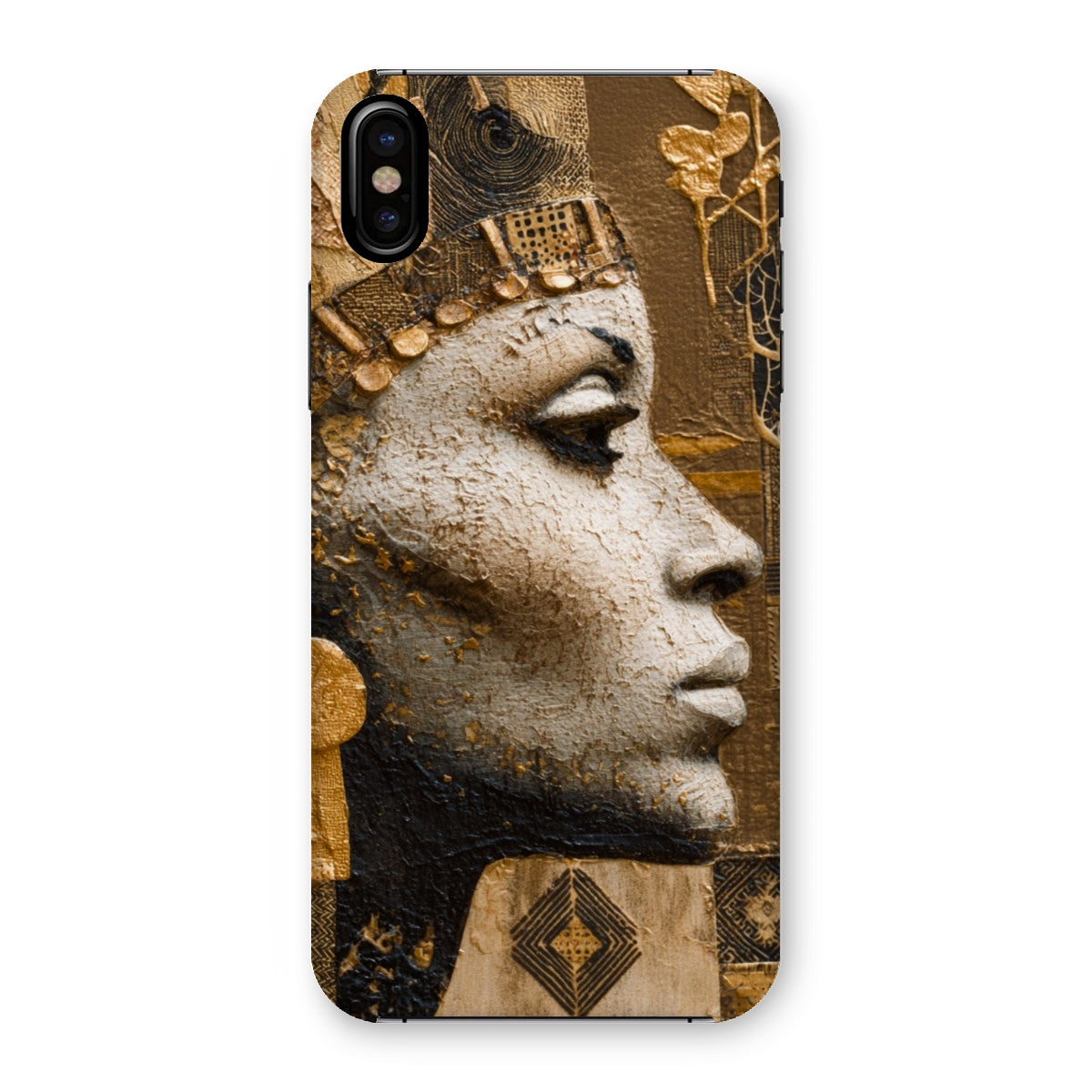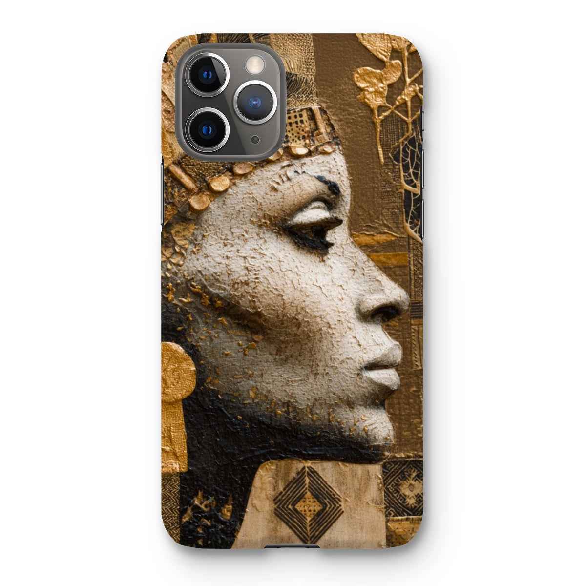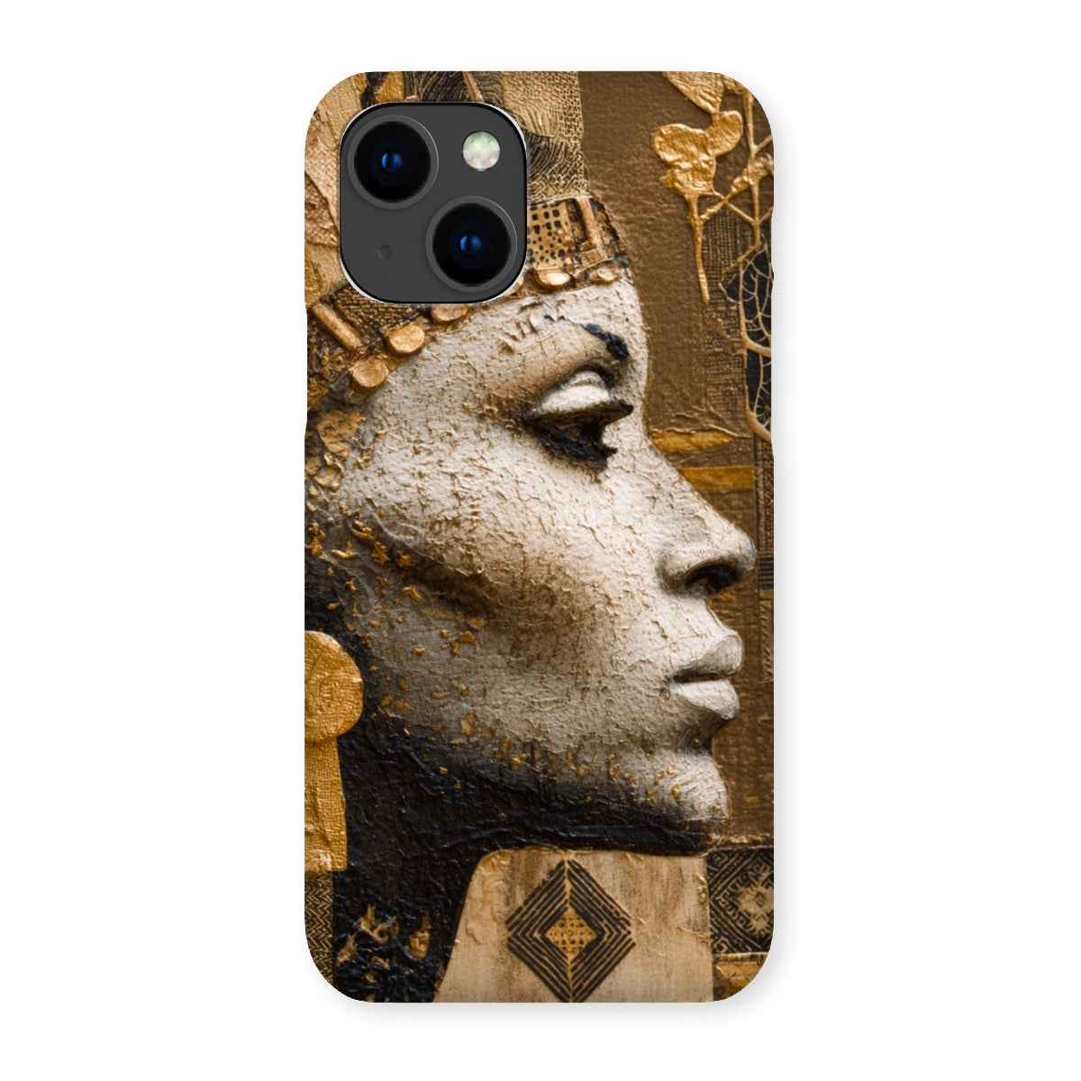 Distinctive Afrocentric design featuring a regal Golden Empress motif with a luminous gold-tone finish that catches the light from every angle, turning your phone into a statement piece.