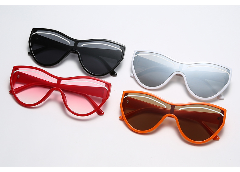 New Personality Cat Eye Sunglasses Female Trend Street Shot One-Piece Sunglasses Candy Color Eyebrow Glasses