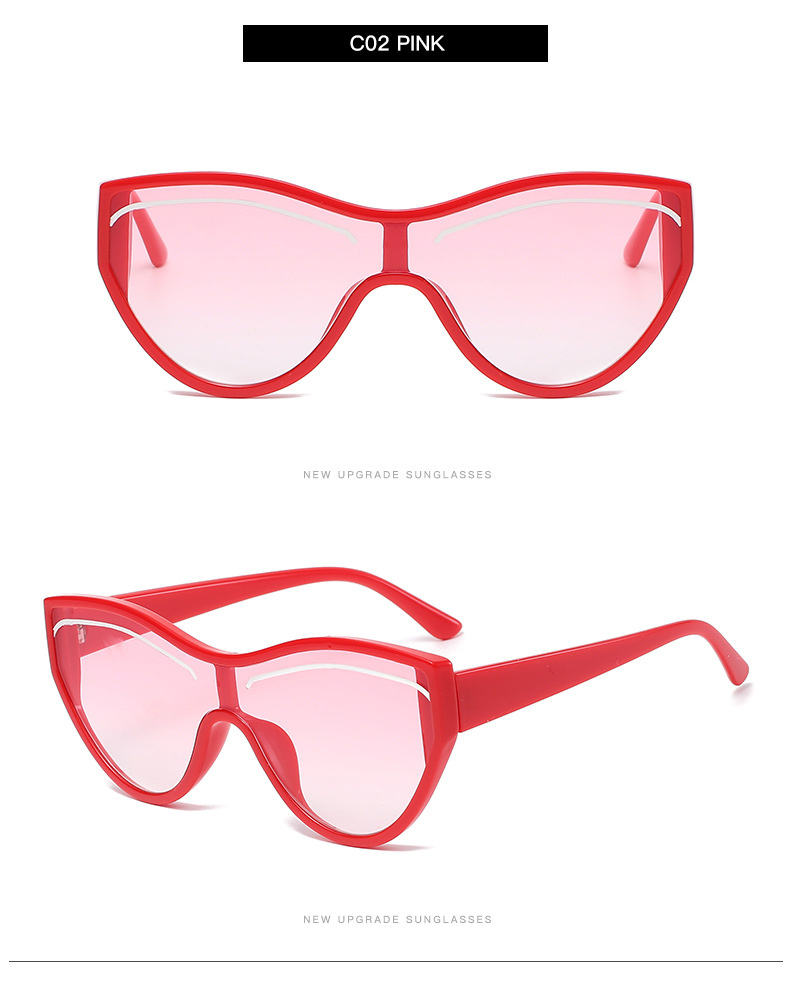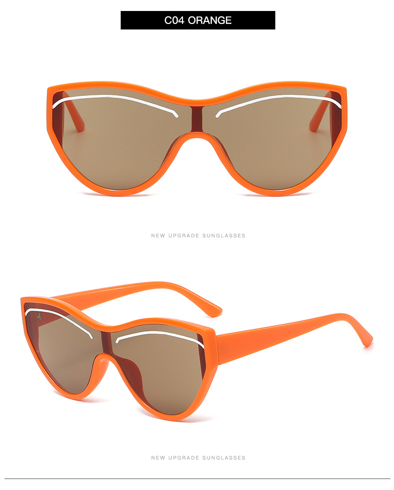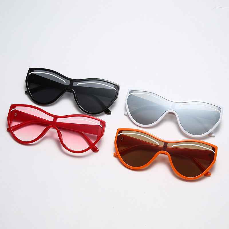 Elevate your street style with these bold one-piece cat-eye sunglasses. Designed for the fashion-forward woman, they blend vibrant candy colors with a unique eyebrow silhouette for a standout look.