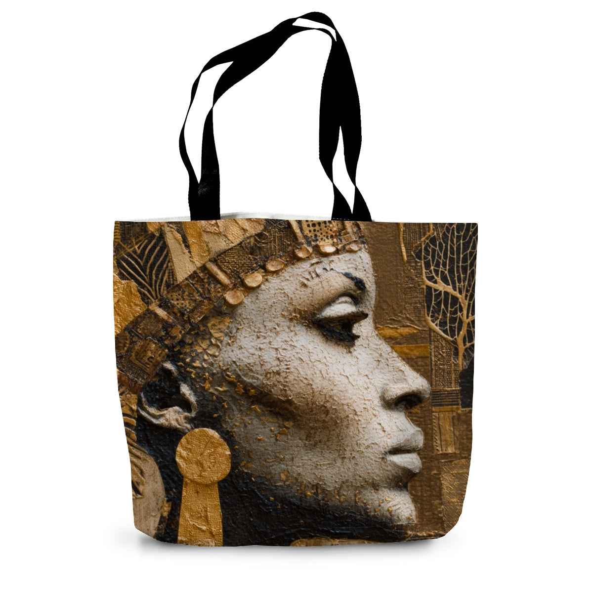 Afrocentric Golden Empress Canvas Tote Bag Durable 360 GSM Black Handles