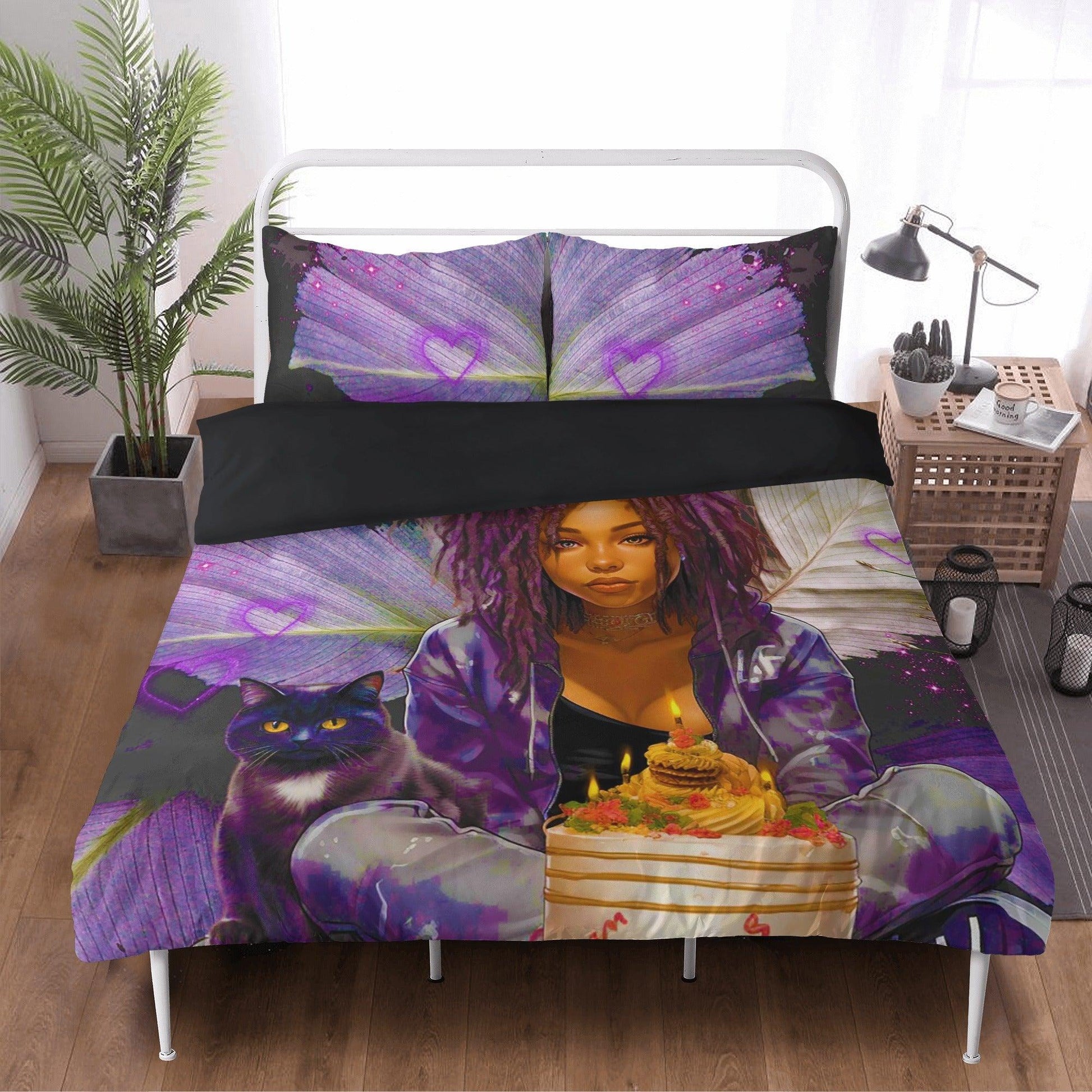 MelanatedME Cute Purple Dreadlock Purple Dream Birthday 3 Pcs Beddings