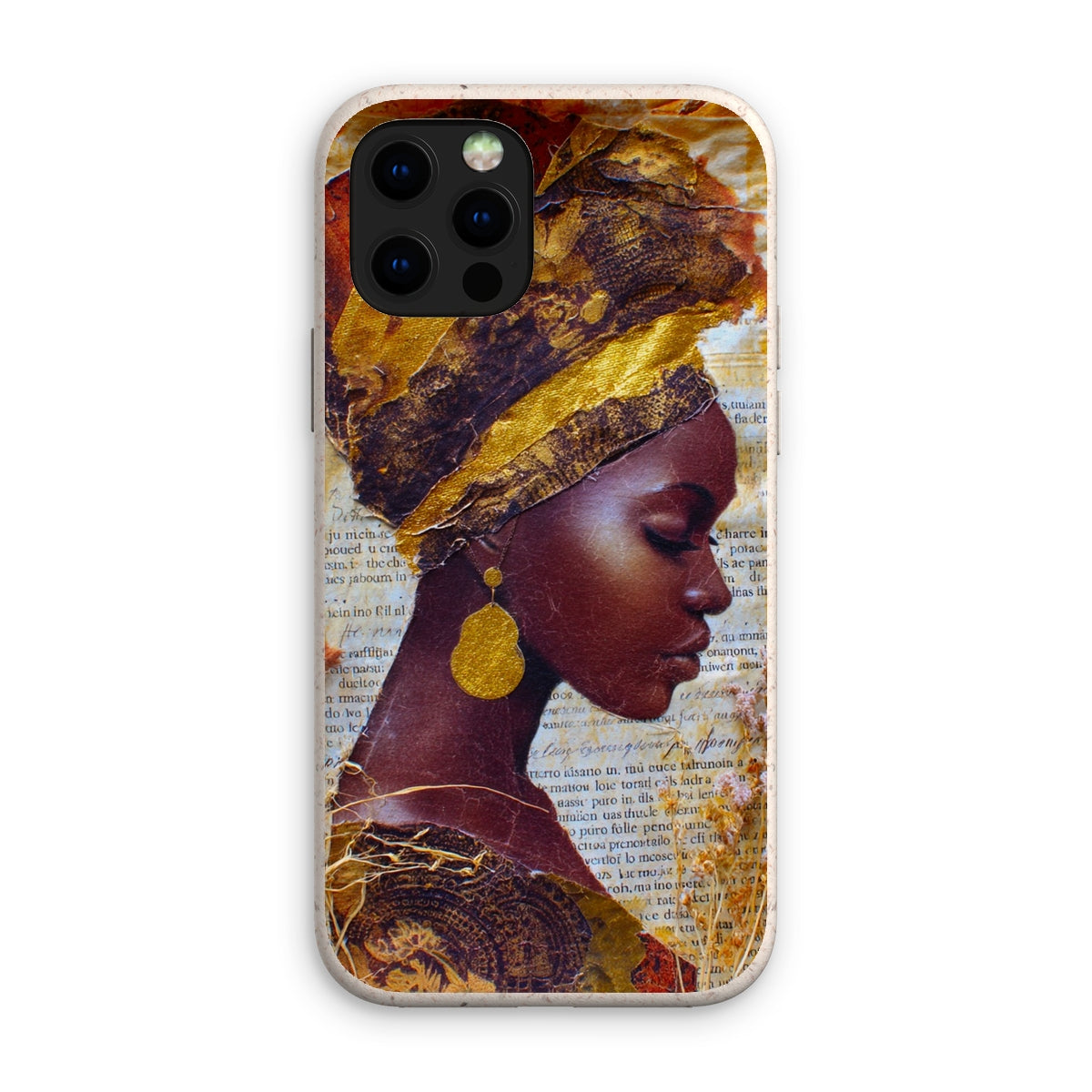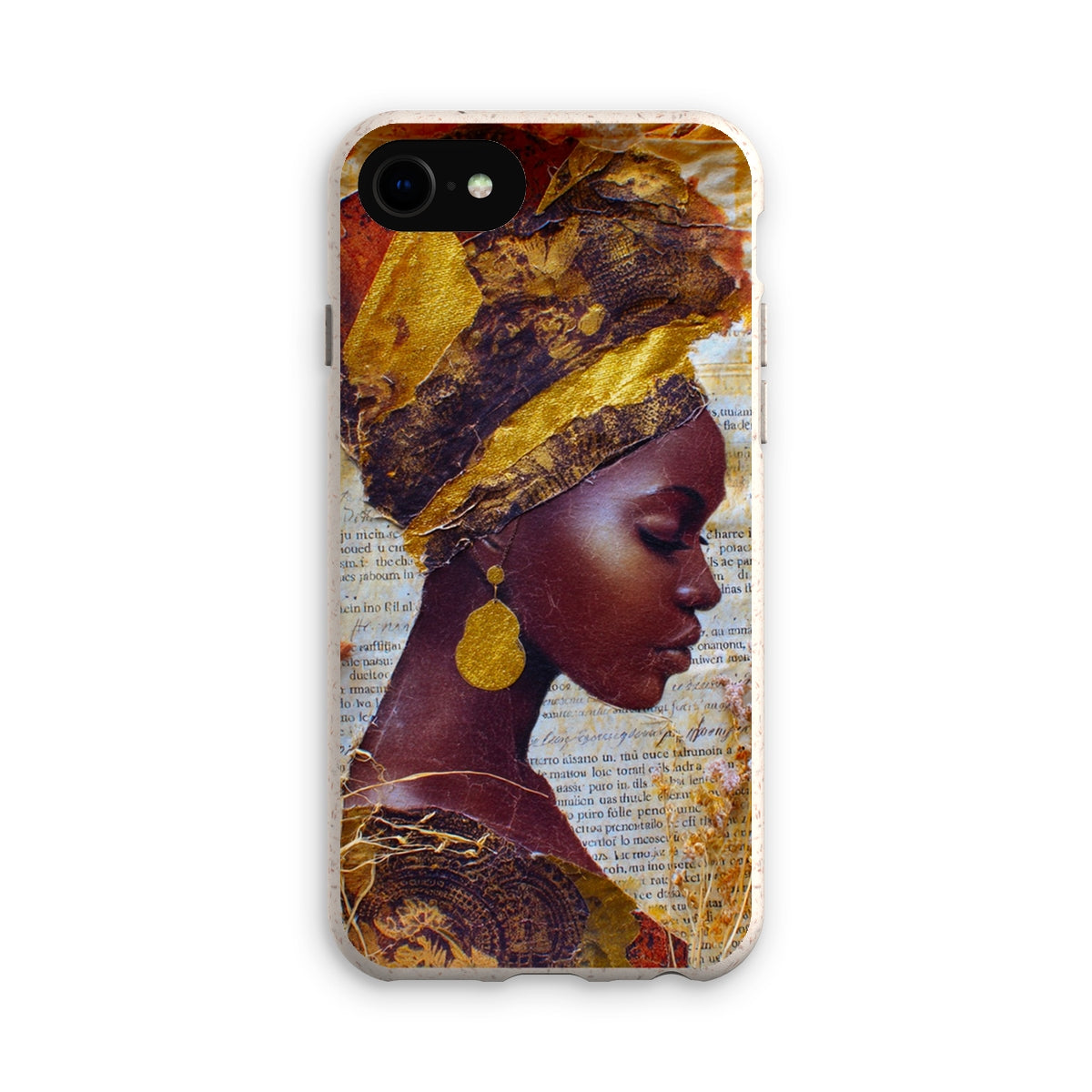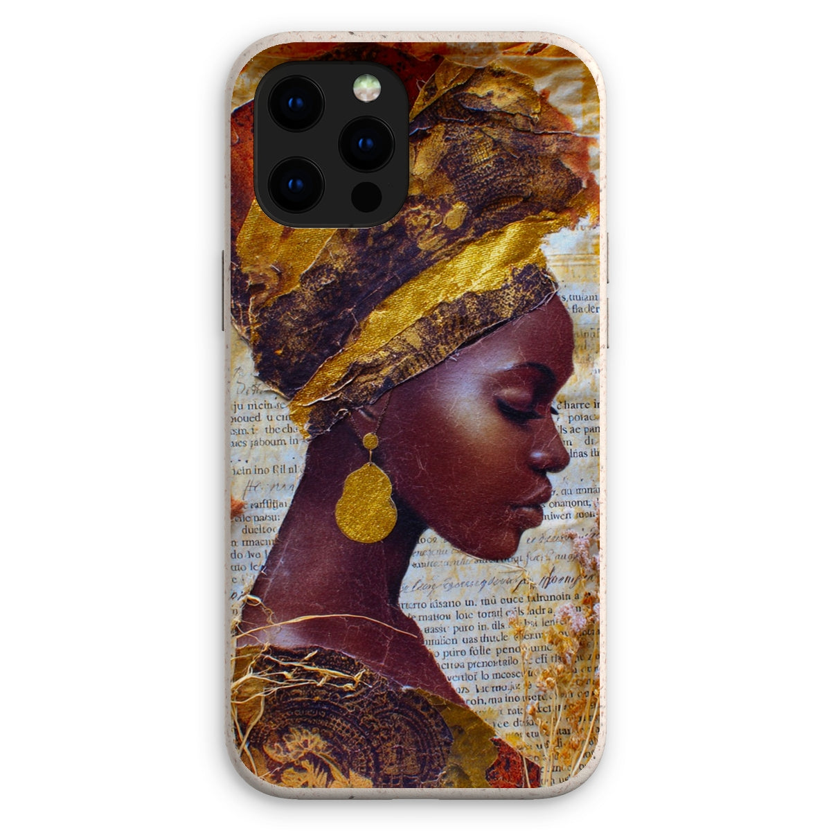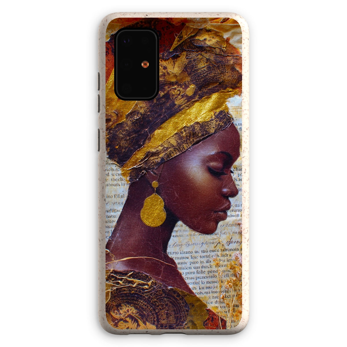 Meet the Eco Friendly Bioplastic Bamboo Fibre Phone Case With Gold Headwrap — a protective shell that pairs environmental responsibility with a bold, contemporary look.