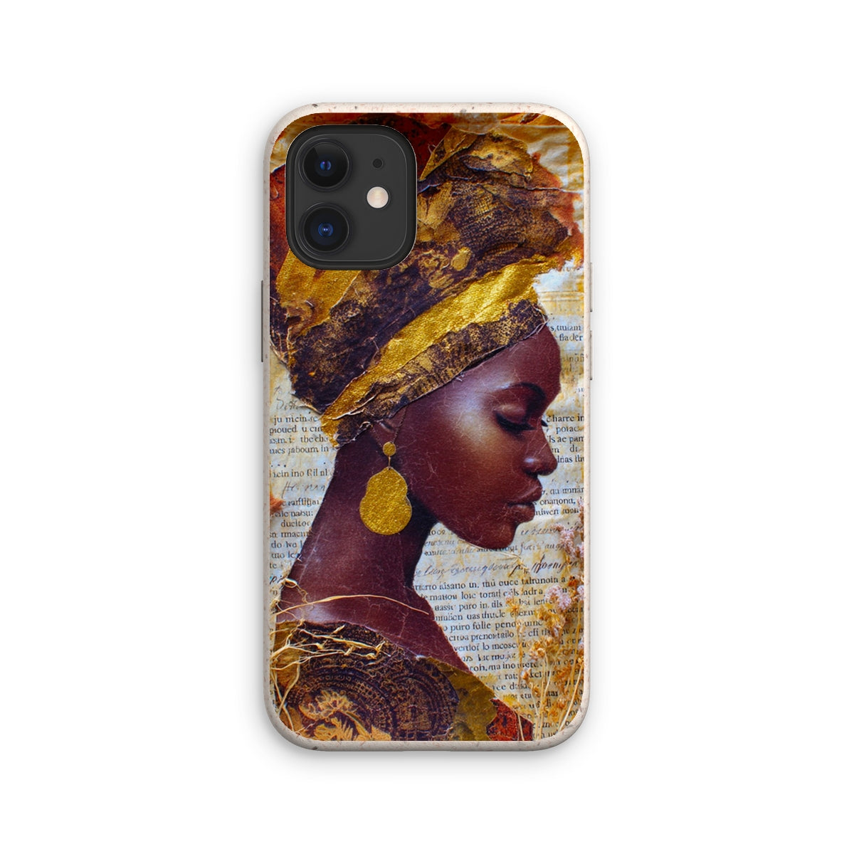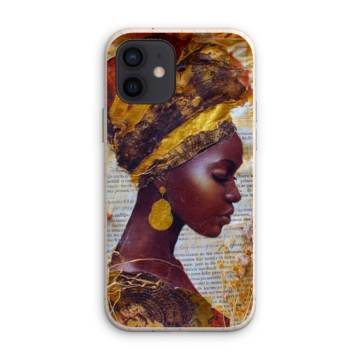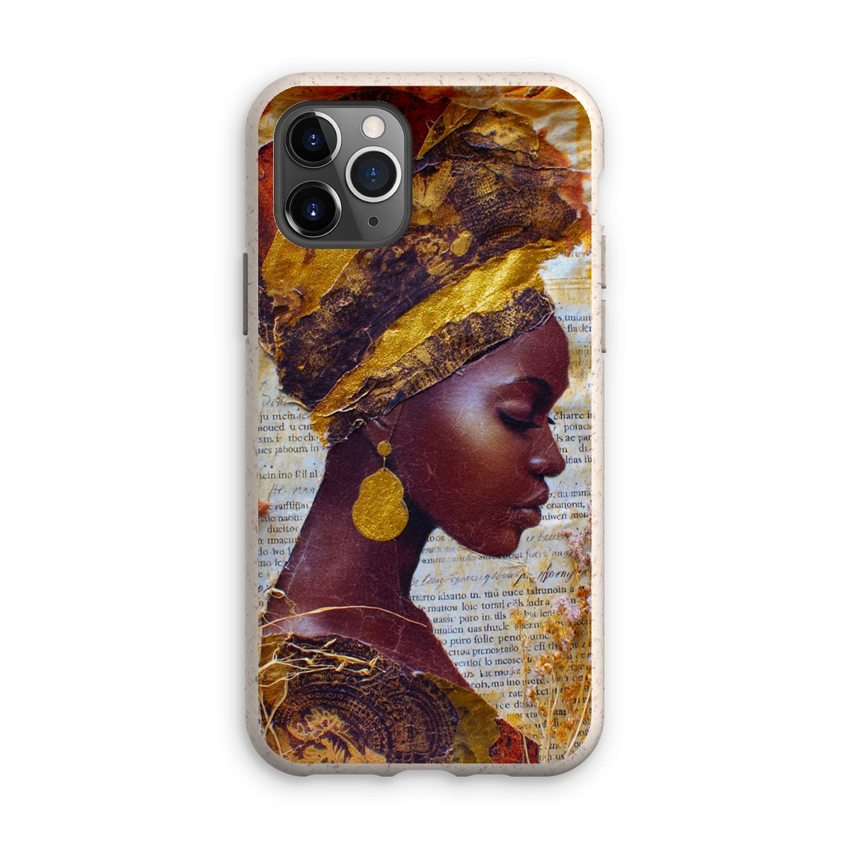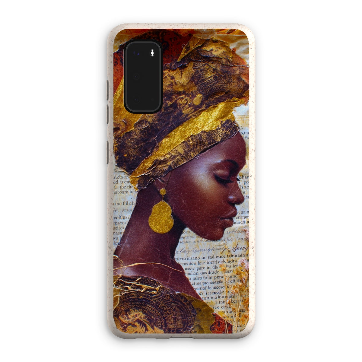 Meet the Eco Friendly Bioplastic Bamboo Fibre Phone Case With Gold Headwrap — a protective shell that pairs environmental responsibility with a bold, contemporary look.