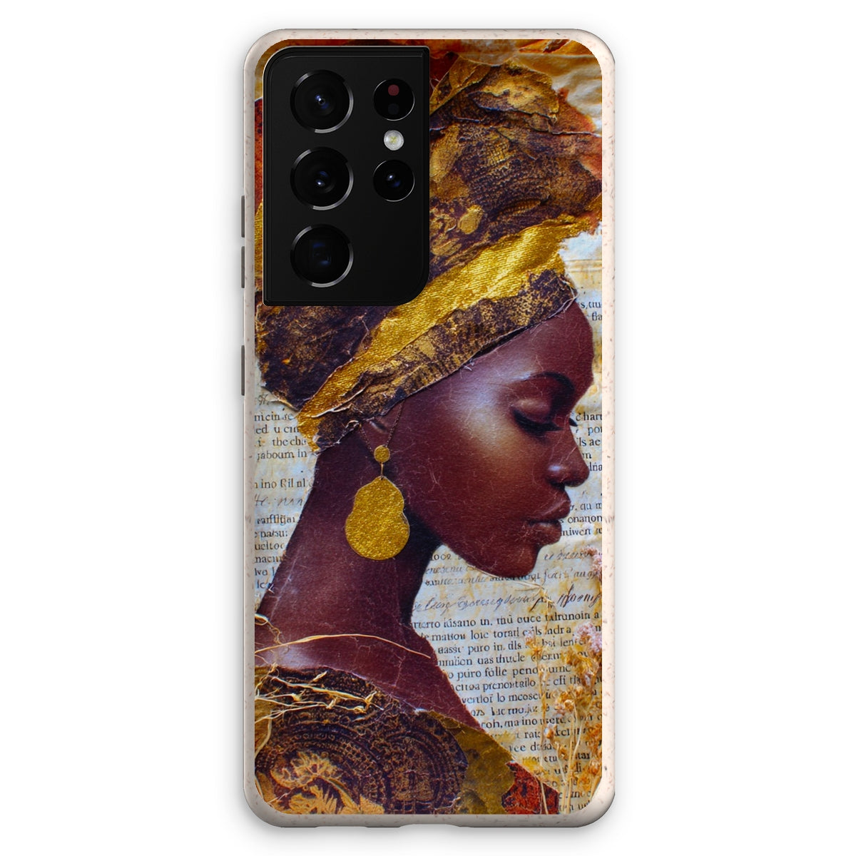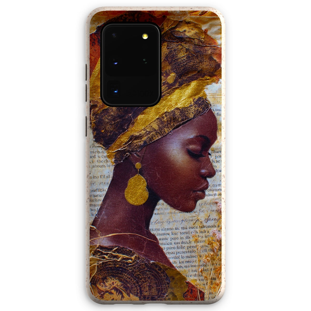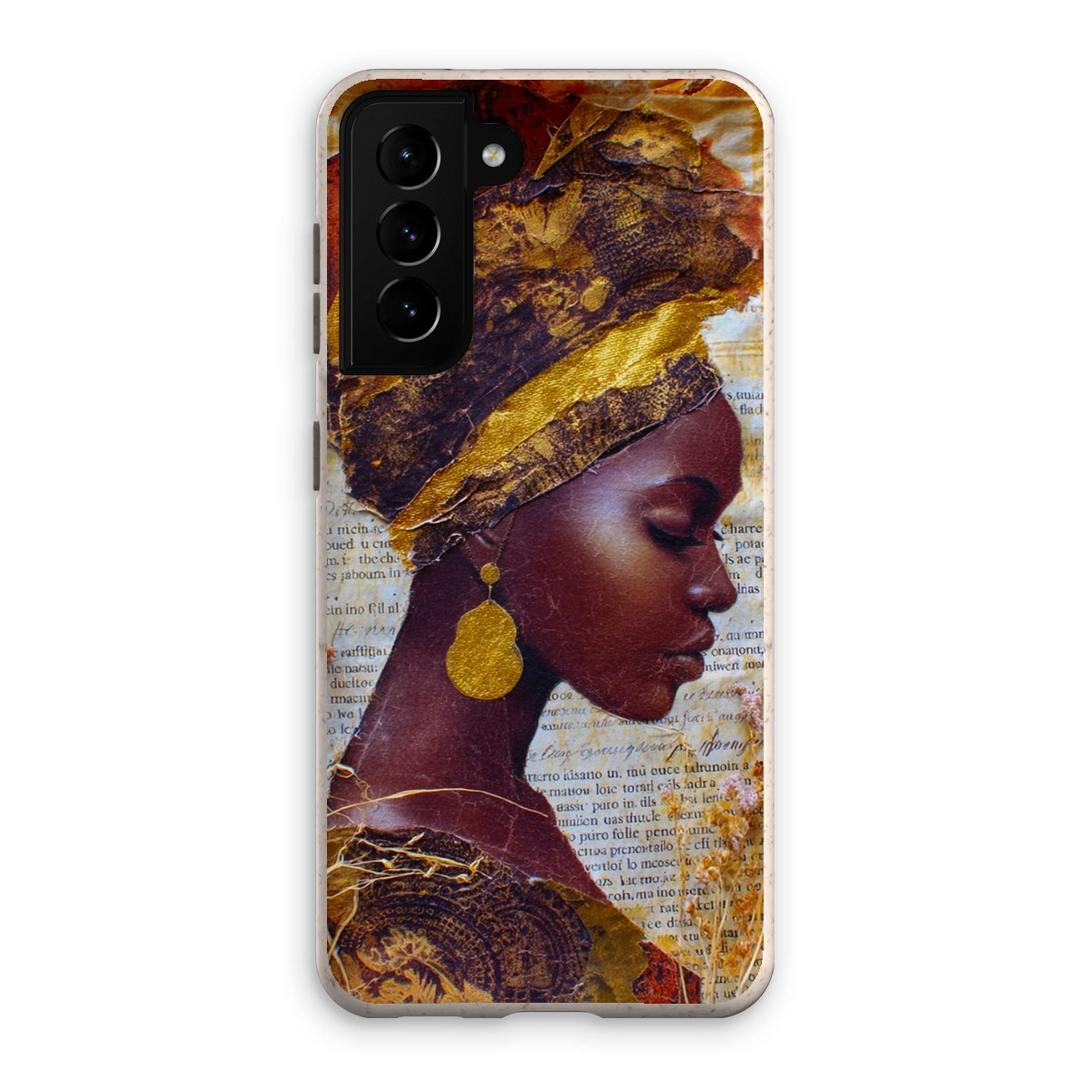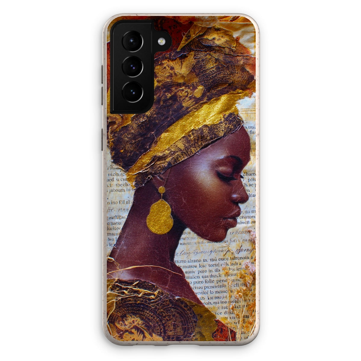 Meet the Eco Friendly Bioplastic Bamboo Fibre Phone Case With Gold Headwrap — a protective shell that pairs environmental responsibility with a bold, contemporary look.
