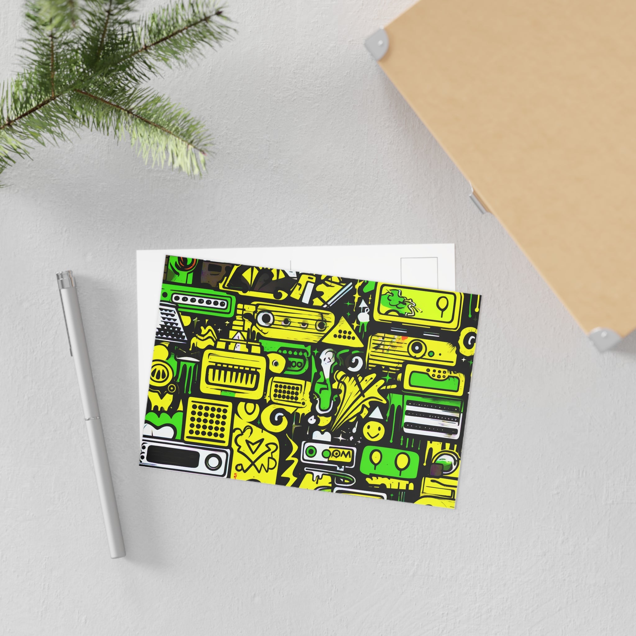 Graffiti Green & Yellow Abstract Fine Art Postcard — Vibrant Urban Art Classic